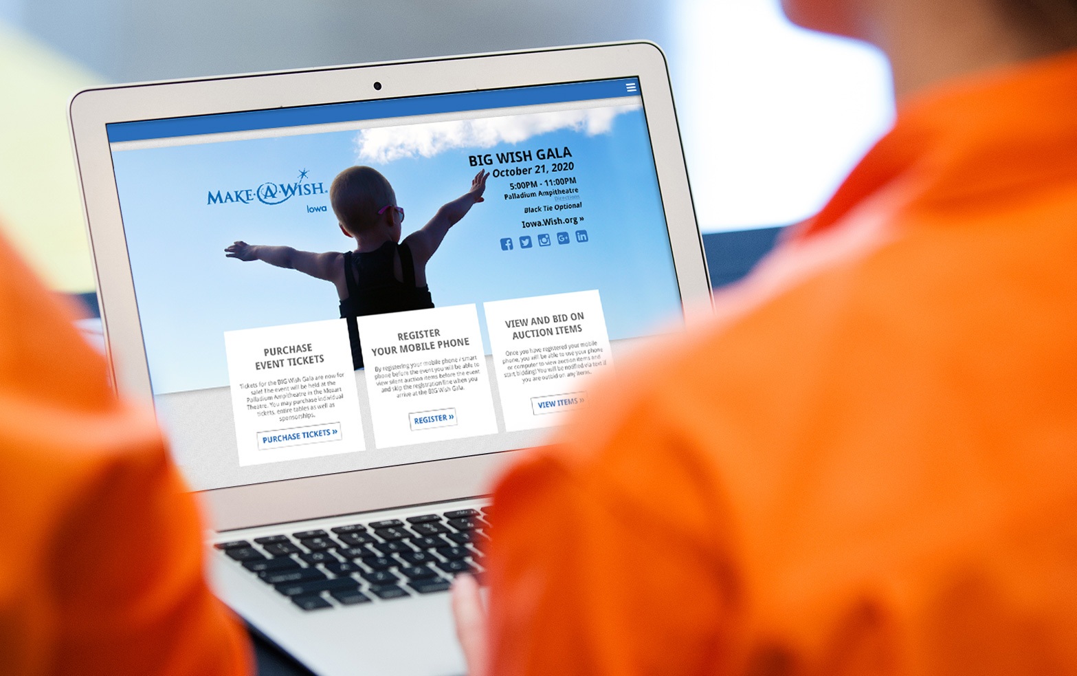 Did you know that 90% of adults use their phones to shop? Our fundraising event homepages are completely mobile-friendly. Your guests can easily see the details for your event, buy tickets, and register in advance—all on one convenient website page. Our professionally designed event homepages work on any internet-enabled device.
